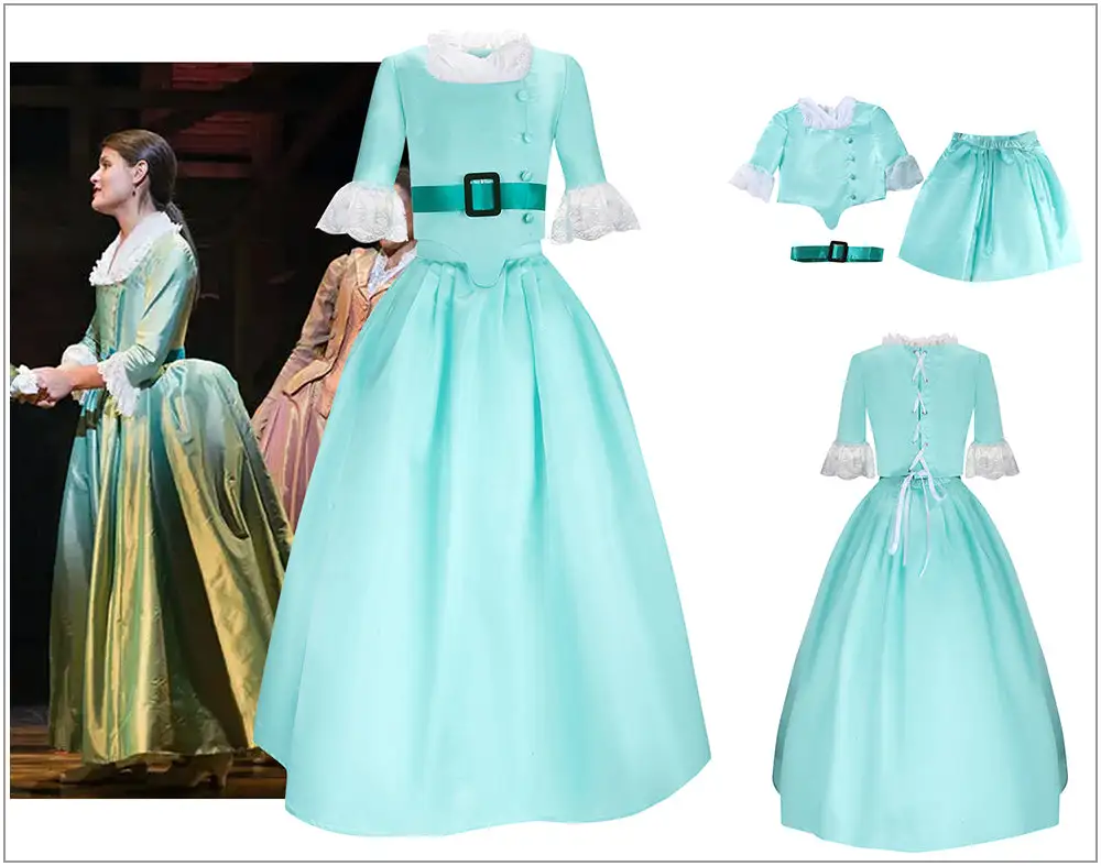 Cosplayflying is selling the customized Hamilton Musical Elizabeth Schuyler Kids Version Child Size Blue Green Stage Dress Concert Cosplay Costume Carnival Halloween. If you want a Hamilton Musical Elizabeth Schuyler Kids Version Child Size Stage Dress which can fit you well, Cosplayflying is your best choice.