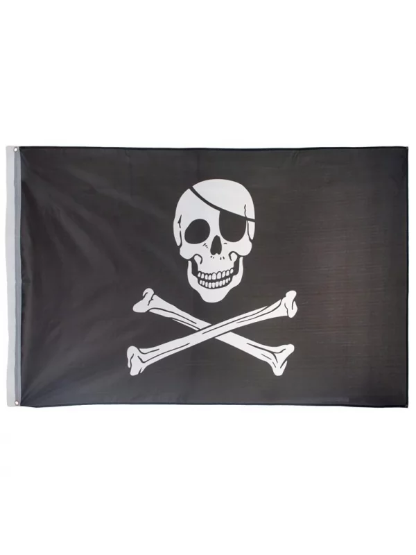 Le drapeau pirate est noir avec une tête de squelette humain et deux fémurs qui se croisent et c’est peut-être en signe du sort que vous réservez à ceux qui auront la mal chance de croiser votre route.