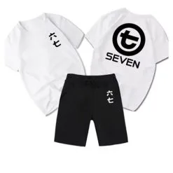 Cosplayfly Anime Scissor Seven/Killer Seven White T-shirt Black Shorts Black Tops Child/Adult Size