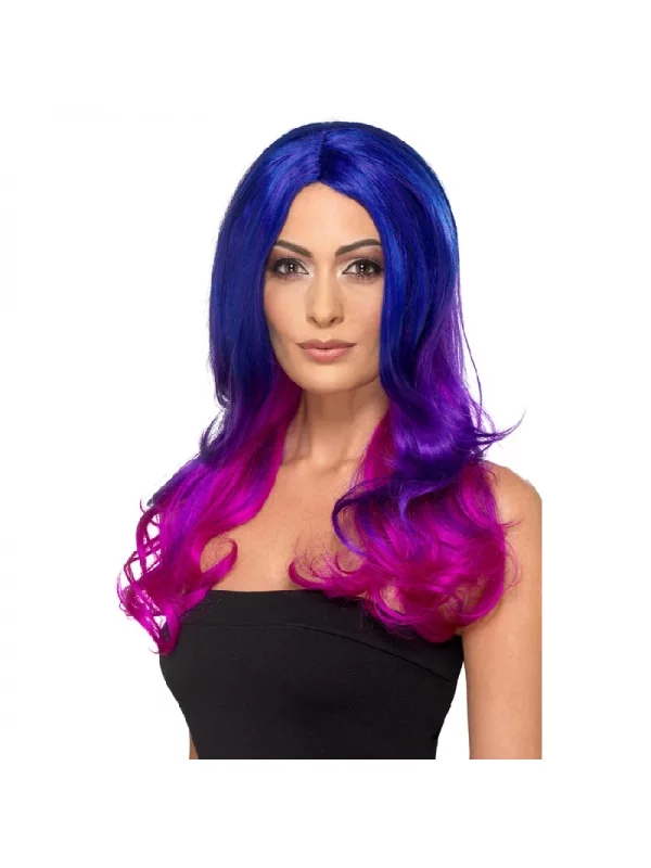La perruque pour femme avec le dégradé bleu et violet se portera très bien pour un personnage fantastique, une sirène, une fée, une sorcière gothique.