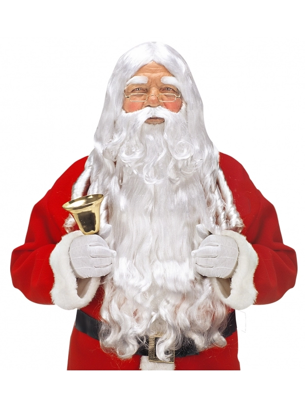 Set perruque, barbe, moustache et sourcils père noël : Longue barbe et perruque bouclée, sourcils épais.
